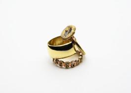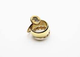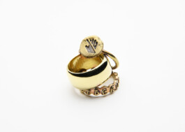 Three Kinds of It focuses on form, function, and their interplay. The three ‘rings’, arranged in such a way that they cannot be worn, each carry a different Please Do Not Touch. Like Rubin’s Vase, where one aspect disappears when you focus on the other, I aim to explore the balance between ‘jewellery’ and ‘sculpture’, and between ‘language’ and ‘decoration’. This creates a situation in which it is difficult to achieve both form and function simultaneously. This work is inspired by jewellery that has been turned into exhibits in museums, which are no longer meant to be worn.