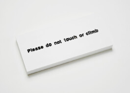 Never want to do this again は、展示会場で見かける注意書きをテーマにしています。土台となるMDFにアクリルガッシュを塗り、乾燥後にやすりをかけ滑らかにする──この工程を何度も繰り返しました。その上に置かれた黒い文字は、銀板から一つ一つ手作業で切り出し、燻し加工で黒く仕上げたものです。同時期に制作した他の作品と比べ、このシリーズには最も高価な素材を使い、最も多くの作業時間を要しました。しかし、展示期間中、来場者の多くはこれが作品だと認識していませんでした。この作品は、素材の価値や労力が「備品」を「作品」に変える要素となり得るのか、という問いを起点に、展示空間で日常的に目にする文字情報をどのように「作品化」できるかを模索しています。