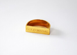 Gold Medal, 2020. Digital print on silk, 88 × 88 cm (scarf). Gold plated brass (scarf ring). Thanks to: Kiyoshi Print, Gilda Yokohama