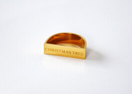 Christmas Tree, 2020. Digital print on silk, 88 × 88 cm (scarf). Gold plated brass (scarf ring). Thanks to: Kiyoshi Print, Gilda Yokohama