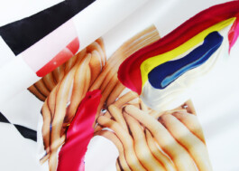 Balloon, 2020. Digital print on silk, 88 × 88 cm (scarf). Gold plated brass (scarf ring). Thanks to: Kiyoshi Print, Gilda Yokohama